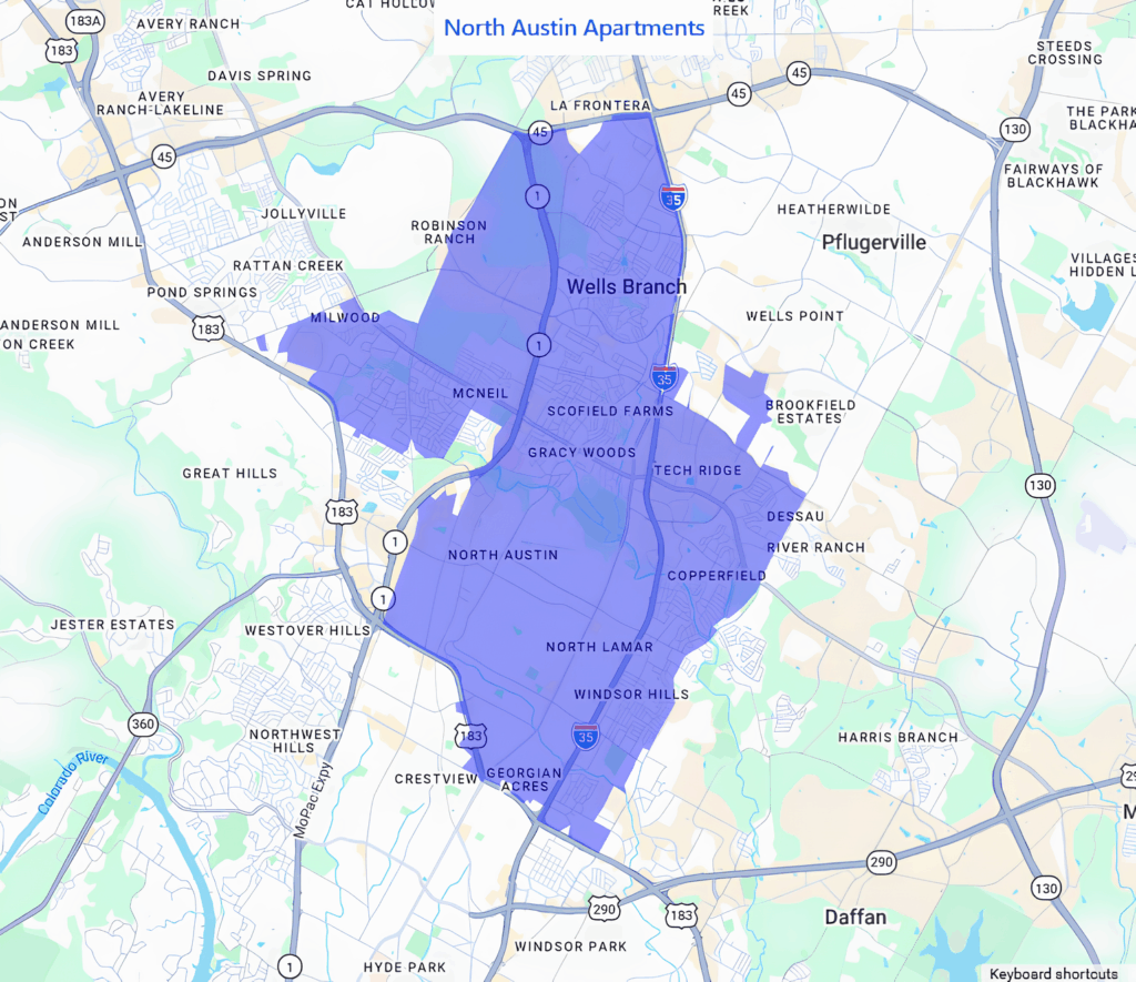 A: Wells Branch (78728) is technically part of the North Austin corridor and offers lower rent ($800-1,200 for 1-bedrooms vs. $1,000-1,600 in the core North Austin corridors) with lots of 2022-2024 new construction. Trade-off: you’re 15-20 minutes from Domain, 25-30 minutes from downtown, farther from the main tech campuses. If you work far northeast (Dell, Samsung campuses) or prioritize budget and space over Domain proximity, Wells Branch delivers better value. If you need Domain walkability or short Apple/Meta commutes, stay in the core North Austin corridors.