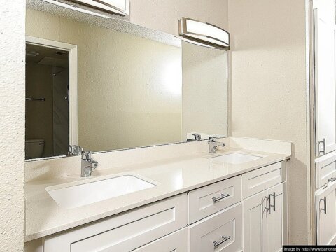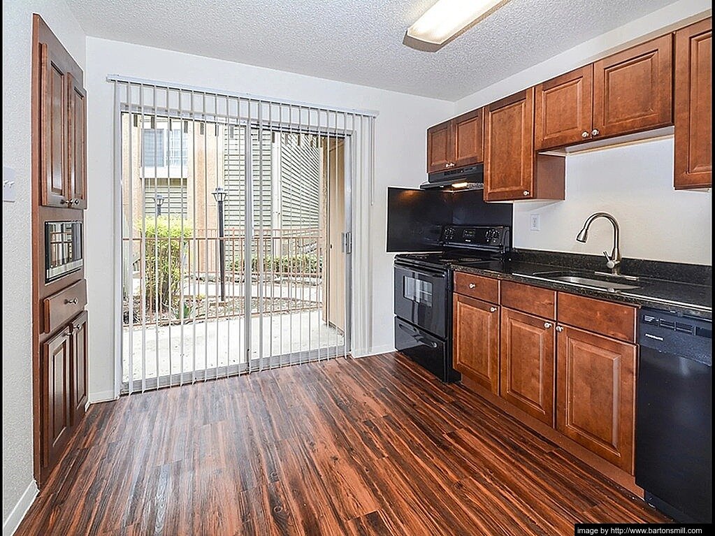 Pet owners with dogs under 100 lbs. Here’s something the listing sites won’t calculate for you: most Austin apartments charge $25-35/month in pet rent. Barton’s Mill charges $0. Over a 12-month lease, that’s $300-420 you’re not spending. The $400 upfront ($200 deposit + $200 non-refundable fee) is standard — the $0 monthly pet rent isn’t. For more options, see our dog-friendly apartments guide.