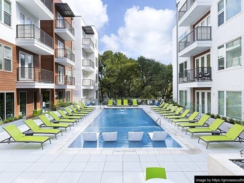 You want a South Lamar address with 2018 construction. This stretch of South Lamar sits between Ben White and Barton Springs Road — about a 10-minute drive to downtown. Almost every other property out here is a 1980s build. Groves is the only option built after 2015 that comes with a full amenity package. And the six-week concession drops pricing close to what those older competitors charge at full price.