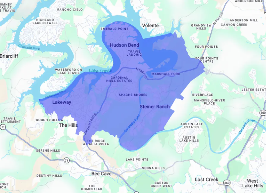 The city stretches across 12 miles of Lake Travis shoreline. It draws a different crowd than Steiner Ranch. More retirees, renters focused on waterfront living, and people who want an established community rather than a newer master-planned one. I see fewer families here compared to Steiner Ranch and more empty-nesters and remote professionals.